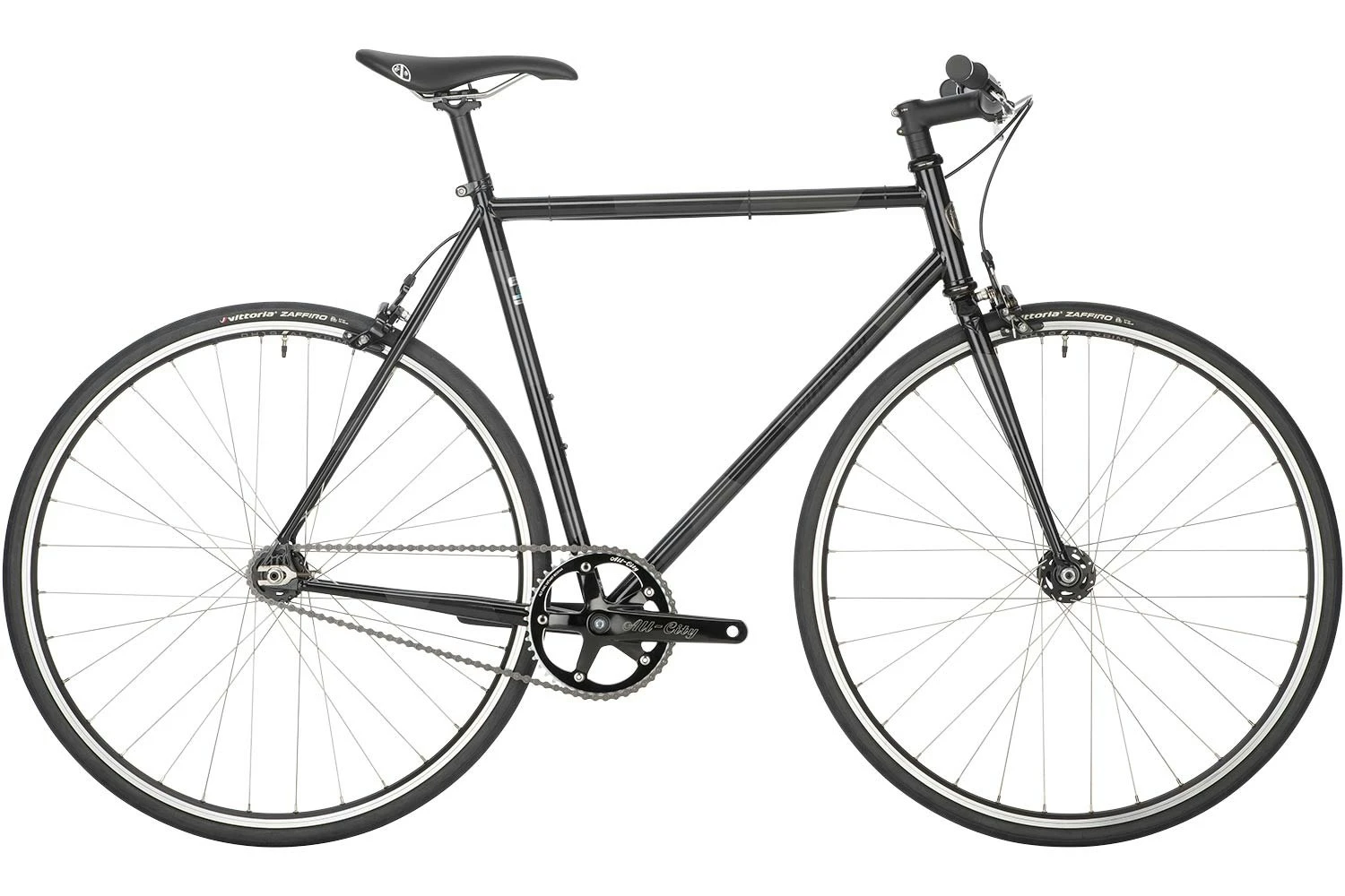 Built to be the track bike we’d always dreamed of owning, this competition-ready steel frame soaks up bumps and sprints like a champ. Boasting a single set of bottle bosses and bumped-up tire clearance, it’s drilled for brakes and fully street legal.