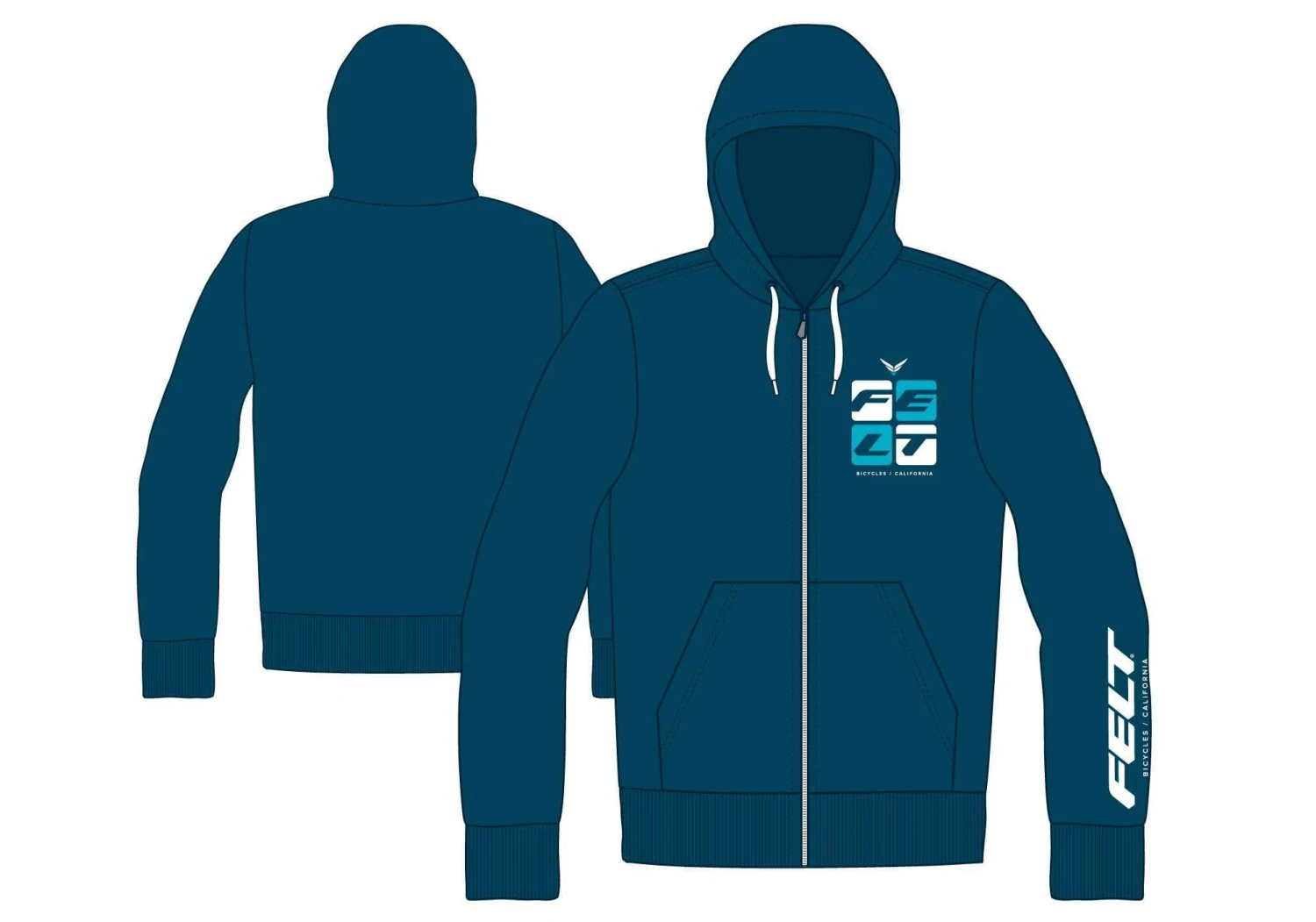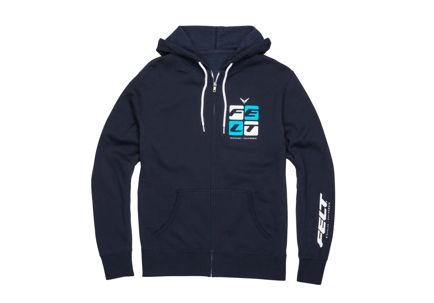 Our newest Felt hoodie, great to wear before or, even better, during the post-ride beer, spritzer, or snuggle. With a brushed interior and large front pockets, you’ll be looking good. Cotton-polyester (52-48%) blend so it’s soft but stretchy.