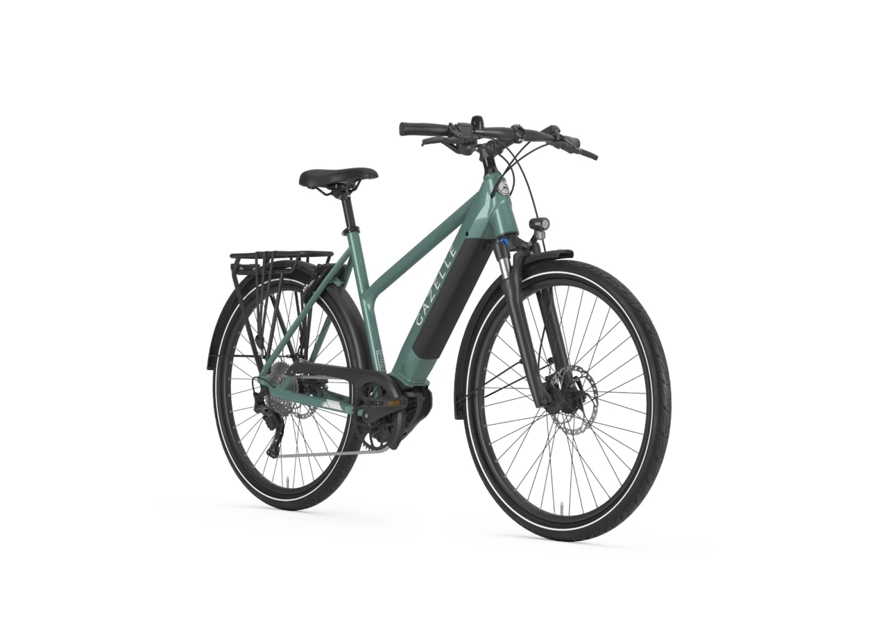 The Medeo T10+ HMB is the stylish and sporty electric bike with dual battery capability to extend your ride beyond previous possibilities. The cleverly designed sloping frame with an integrated motor and battery is instantly recognizable and will leave drivers gasping in stunned silence as you effortlessly navigate the roads with assistance up to 28 mph. With confidence inspiring handling due to the robust aluminum frame, wide tires, and suspension front fork, the Gazelle Medeo T10+ HMB is the smart choice for any adventure near or far.
