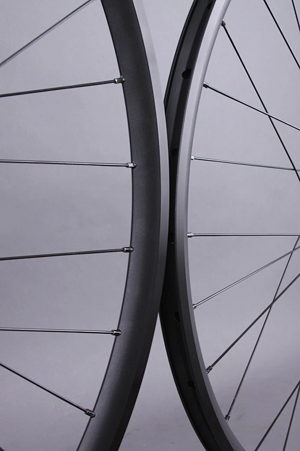 The black anodized brake surface on these rims will start to wear off fairly soon when used with rim brakes.