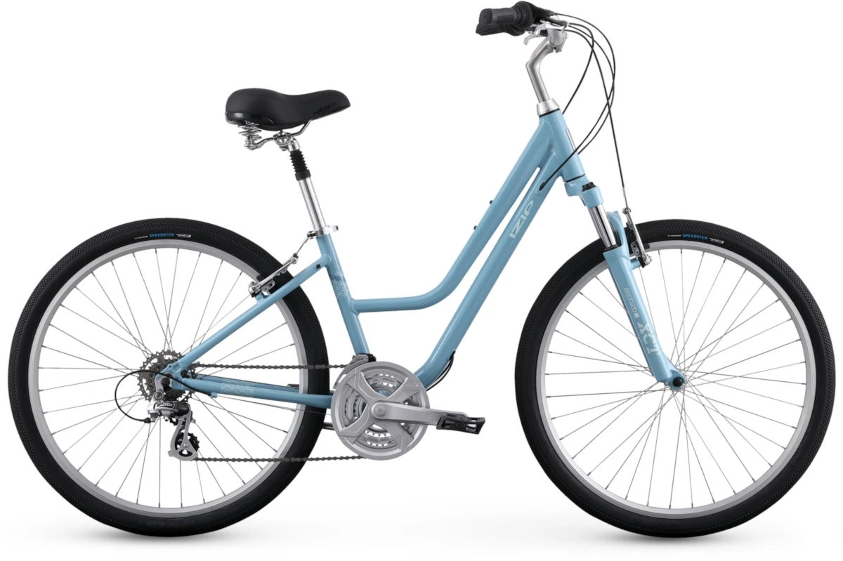 When it comes to riding bikes, the IZIP Zest is as comfy as it gets. Whether cruising the boardwalk, the campground or the bike path, this comfort bike is the definition of easy riding. The Zest puts the rider in an upright yet laid-back position for maximum comfort on the bike. Large 27.5 x 1.95 tires allow you to roll over the bumps with ease while keeping your speed up. Pedals with no-slip grip add to the all-day comfort, while classy graphics and reflective details add a refined look. Venture into a new level of comfort on the bike with the Zest step-thru.