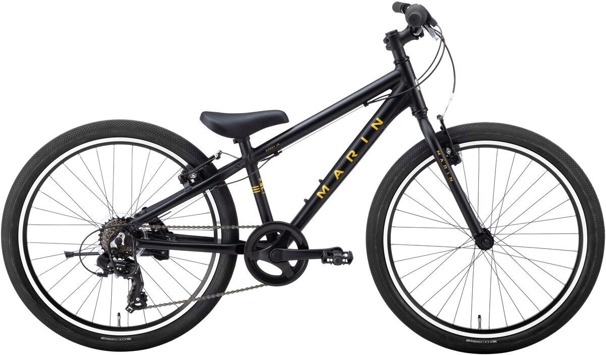 The Donky Jr 24 is built around a lightweight aluminum frame and features a dependable Shimano 6-speed drivetrain, kids-sized saddle, grips, and controls, along with the quality components you expect from Marin. Perfect for neighborhood adventures, where each block away from home feels like a mile.