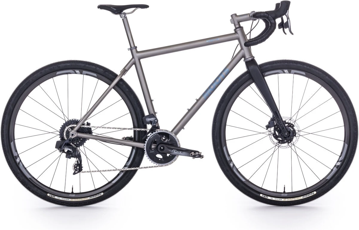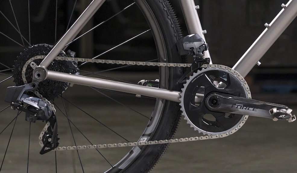As the evolution of gravel bikes continue, drive trains take on a special debate of 1x or 2x? Well, that’s up to you and your preferences for your local riding. But what’s great is that SRAM and Shimano have come out with gravel wide drivetrain options.. What does this mean? GRAVEL WIDE….say it again with spirit! What does it do? Gravel wide moves the chain ring (s) outboard as well as adding 2.5mm to each side for width at the crank. What this allows a builder like Moots to do is move the chainstays outboard to create tire clearance WITHOUT making the chainstays longer. This in conjunction with the wider gearing range now needed for 45-50mm tires and the terrain we want to ride makes this a win-win. The ROUTT UPDATES in all three models are built around gravel wide. The ONLY drawback is that you will NOT be able to install a standard road group set on the Routt family of bikes, but with broader tires being used we’ve found standard road gearing simply no longer to be relevant for this application.
