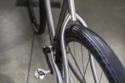 The current Moots gravel/cx fork is standard on all three Routt models. It features ample room for the 50mm tire, tapered steerer tube, hidden fender eyelets, 12mm thru-axle, and flat mount brake mount. Its full carbon construction is stiff, durable, and lightweight. Designed by Moots specifically for our gravel bikes.
