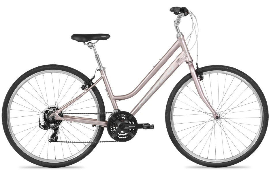 The Yorkville combines an upright, comfortable riding position with a dash of speed that makes every ride enjoyable. This lightweight aluminum bike pedals up hills easily & corners beautifully thanks to the efficient road bike-sized wheels & a 21-speed drivetrain. Enjoy sure-stopping V-brakes & a plush seat, while the suspension seat post smoothes out the bumps along the way.