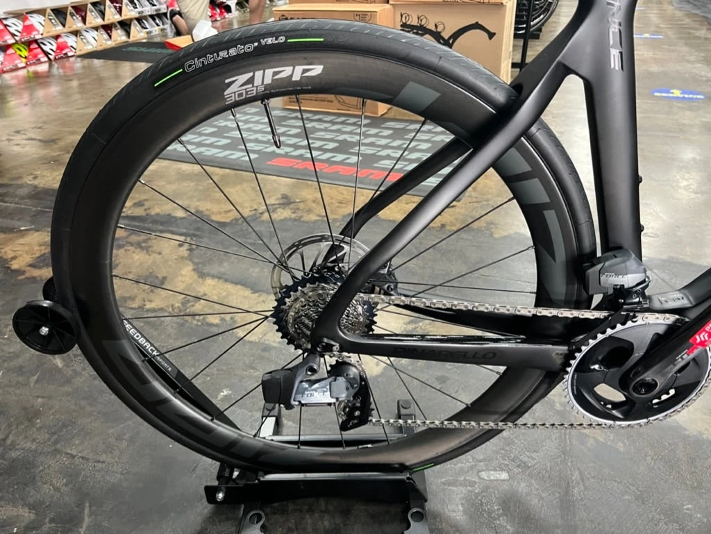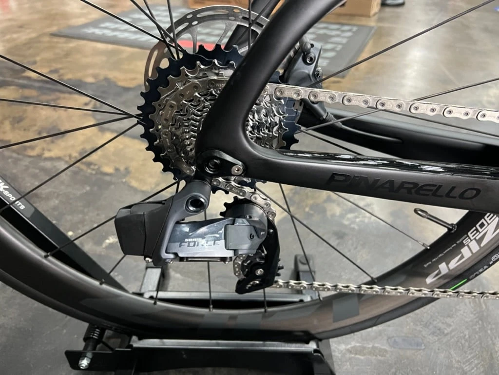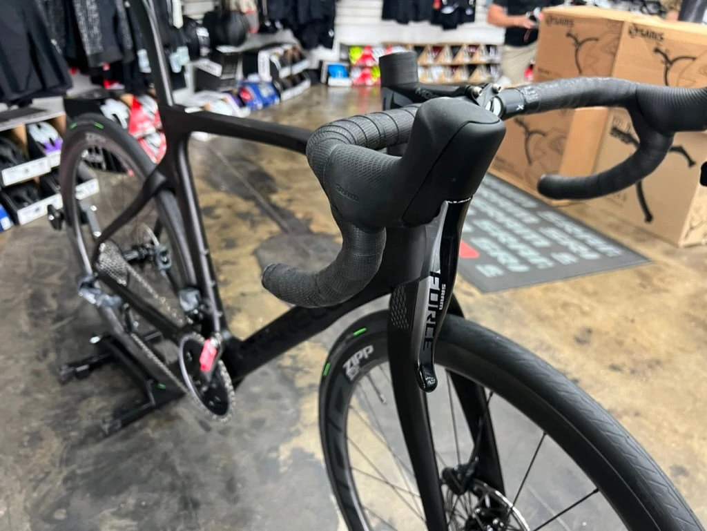 FRAME: TorayCa T700 UD, TiCRâ„¢ cable routing, Italian BB FORK: Prince onda fork with forkflapâ„¢, 1.5′ upper and lower steerer CRANKSET: SRAM Force AXS FRONT DERAILLEUR: SRAM Force AXS 12S REAR DERAILLEUR: SRAM Force AXS 12S CASSETTE: SRAM Force AXS 12S CHAIN: SRAM Force AXS 12S BOTTOM BRACKET: ITA SRAM DUB BRAKES: SRAM Force AXS HANDLEBAR: Jaguar XA Aero TiCR STEM: Tiger Aero Alu TiCR BAR TAPE: MOST Ultragrip Evo 3mm – Black SADDLE: Most Lynx Aircross FEC Alloy Large 145mm SEATPOST: Pinarello Aero Seatpost SEAT CLAMP: Frontal Seat Clamp  WHEELSET: Zipp 303 S TIRES: Pirelli Cinturato Velo
