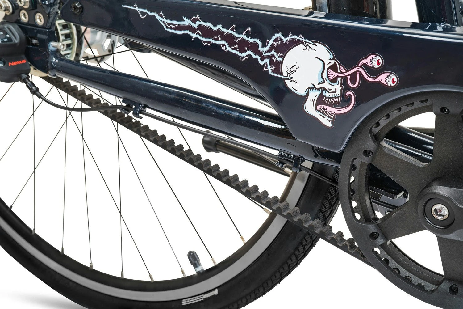 The Priority Bicycles x Last Podcast On The Left Dark Rider Cruiser screams style, function, and attitude! This marks the third edition of our annual collaboration with LPOTL. Featuring sleek Gloss Midnight paint and bold LPOTL branding, this limited-edition bicycle is low maintenance by design with a Gates Carbon Drive Belt and internally geared rear hub. Offered in multiple frame sizes, this 3-speed beauty comes with a rear rack, retro belt cover, fenders, and swept back handlebars. It can handle Sunday leisure rides and the workweek grind like a boss. Scroll down for everything you need to know about our instant cult classic!