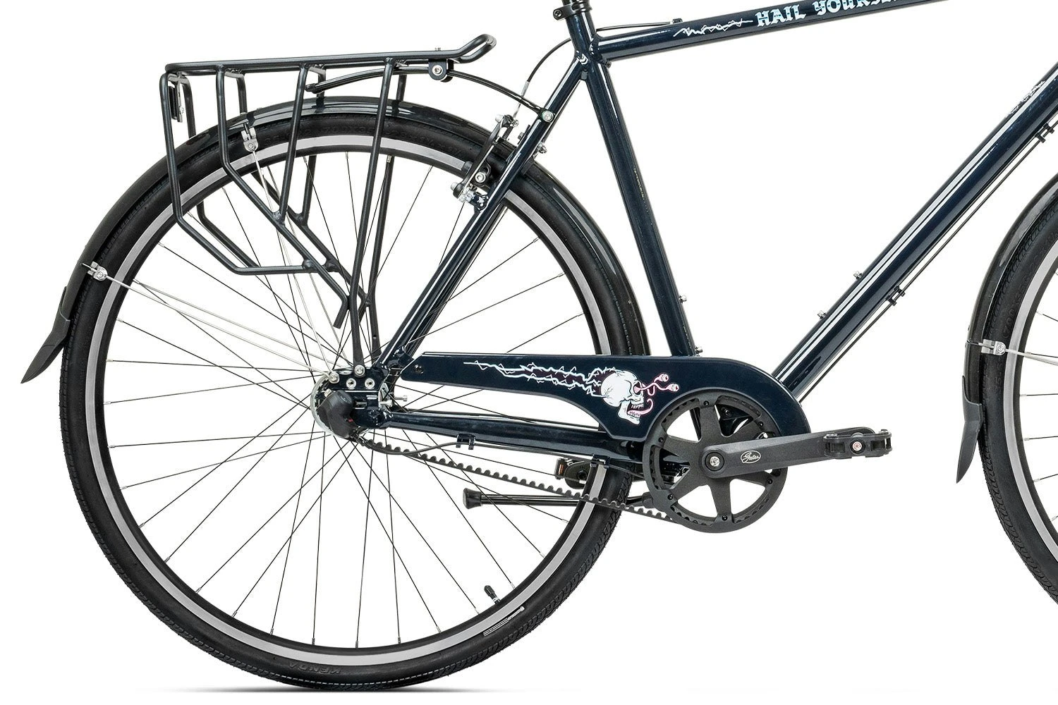 Comes with rear rack, fenders, and kickstand