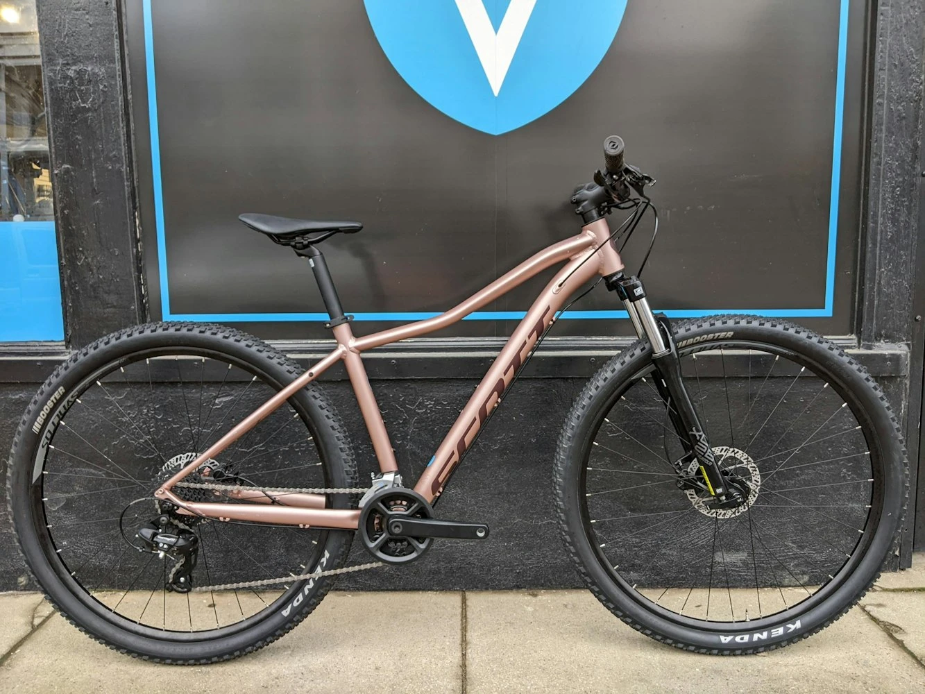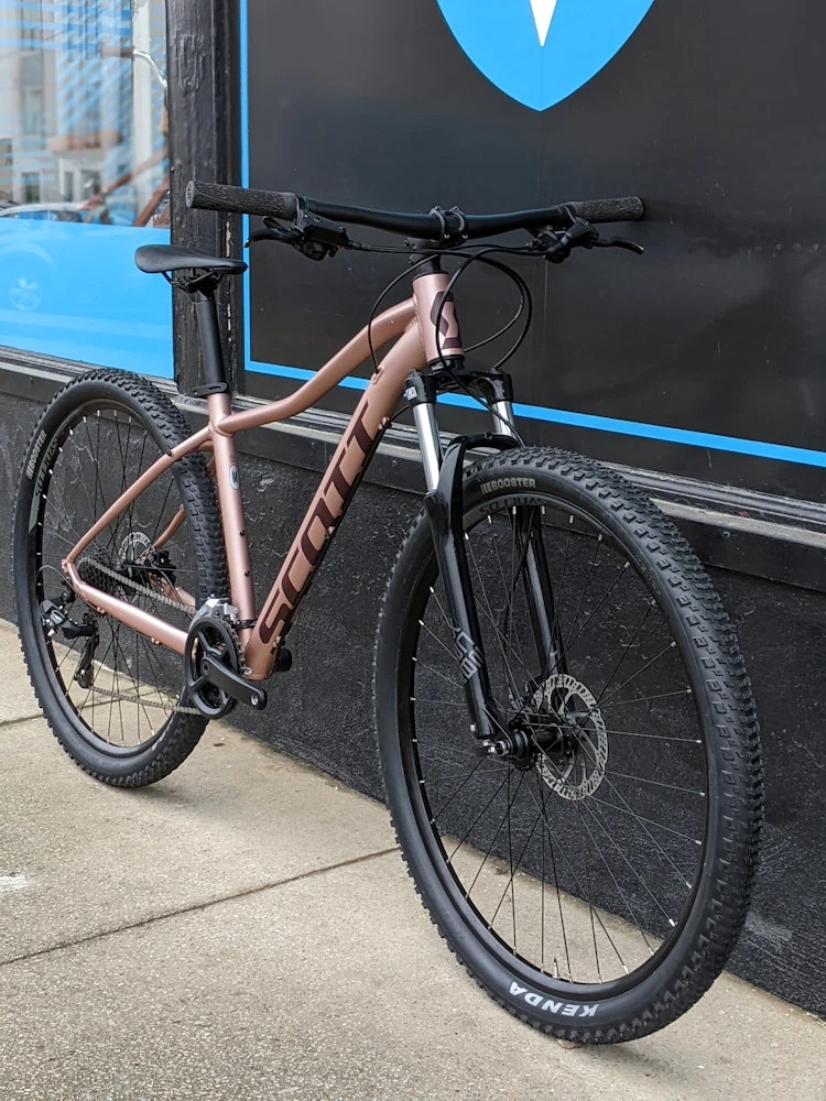 The SCOTT Contessa Active 50 is a hardtail mountain bike that features a light Alloy Frame. The series comes fully equipped with a Suntour fork, perfect for those always on the go.