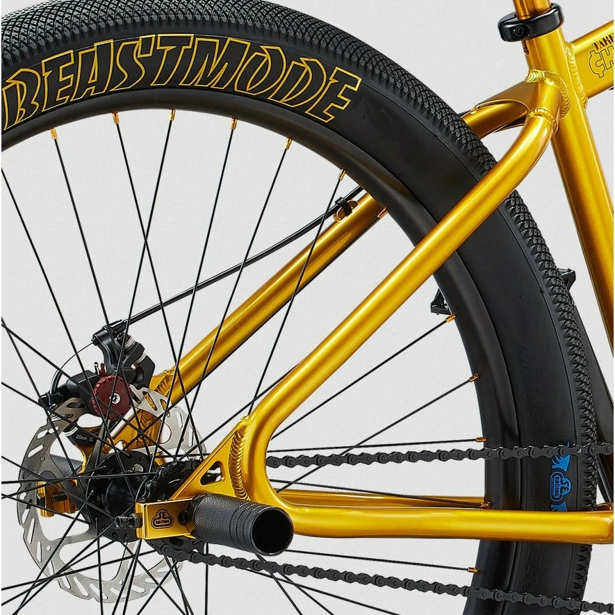 Marshawn Lynch’s new 27.5+ Beast Mode Ripper is pure GOLD! Way before Marshawn became an All-Pro NFL running back and Super Bowl Champion, he had a love for BMX. We first linked up with Marshawn about five years ago with a goal to develop a unique and dope ass bike that could run through your opponent’s face. The end result was the Beast Mode Ripper, the world’s first 27.5”+ BMX bike. This beast of a bike is ‘bout that action as it’s built with a super strong 6066 aluminum frame and full Cr-Mo Landing Gear forks centered around big ol’ 27.5” x 3.0” Speedster tires. The stopping power on this bad boy is on point with Avid BB 5 disc brakes front and rear. Doesn’t matter if you’re going on a chill ride, raising it up through your hood or showing some bunnies on some jumps, just don’t forget to take care of yo’ chicken!