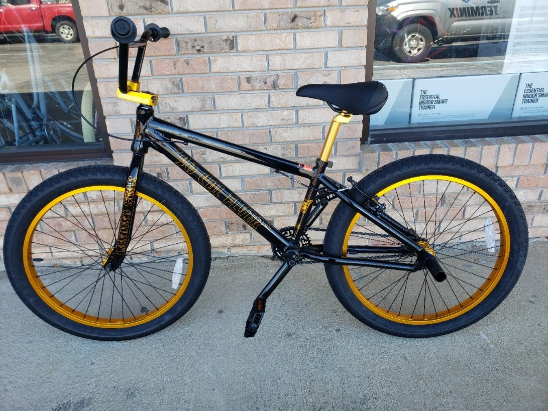 Such a classic colorway! Black & gold looked awesome on our PK Rippers back in the late ‘70s and it looks just as good today on the new So Cal Flyer. The 24″ So Cal Flyer is back with a vengeance. The frame has been beefed up with an internal headset, sealed bearing mid-bottom bracket and wider stays. The bike spec has been upgraded with the new 24″ x 2.4″ Bozack tires, double-wall rims and SE nylon fiber pedals. The So Cal Flyer is THE bike to have if you’re looking for a 24″ BMX bike.