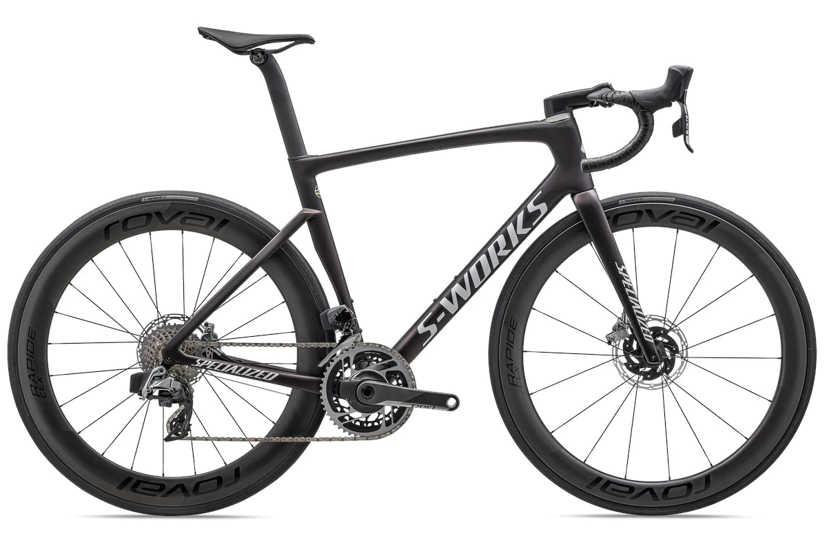 Rims: Front: Roval Rapide CLX, 21mm internal width carbon rim, 51mm depth, Win Tunnel Engineered, Roval AFD hub, 18h, DT Swiss Aerolite spokes, Rear: Roval Rapide CLX, 21mm internal width carbon rim, 60mm depth, Win Tunnel Engineered, Roval AFD hub, 24h, DT Swiss Aerolite spokes