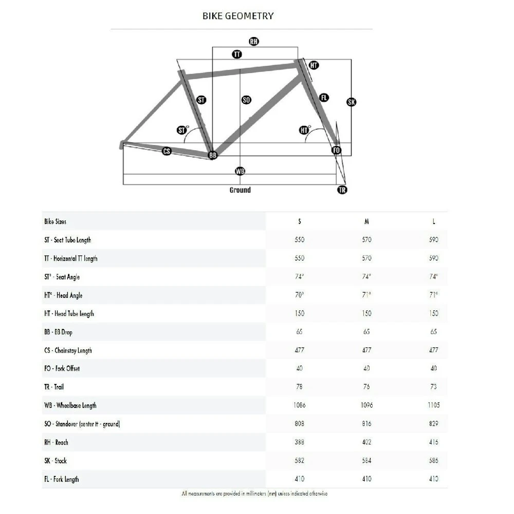 Light weight Aluminum alloy frame and fork, geometry built around ride stability and comfort.