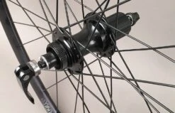 Velocity Aileron Disc tubeless ready wheelset. Suitable replacement for entry level to higher-end road and gravel bikes. The wheels come out of the box ready for quick release, but they include thru axle caps for 15 x 100mm in the front, and 12 x 142mm in the rear.